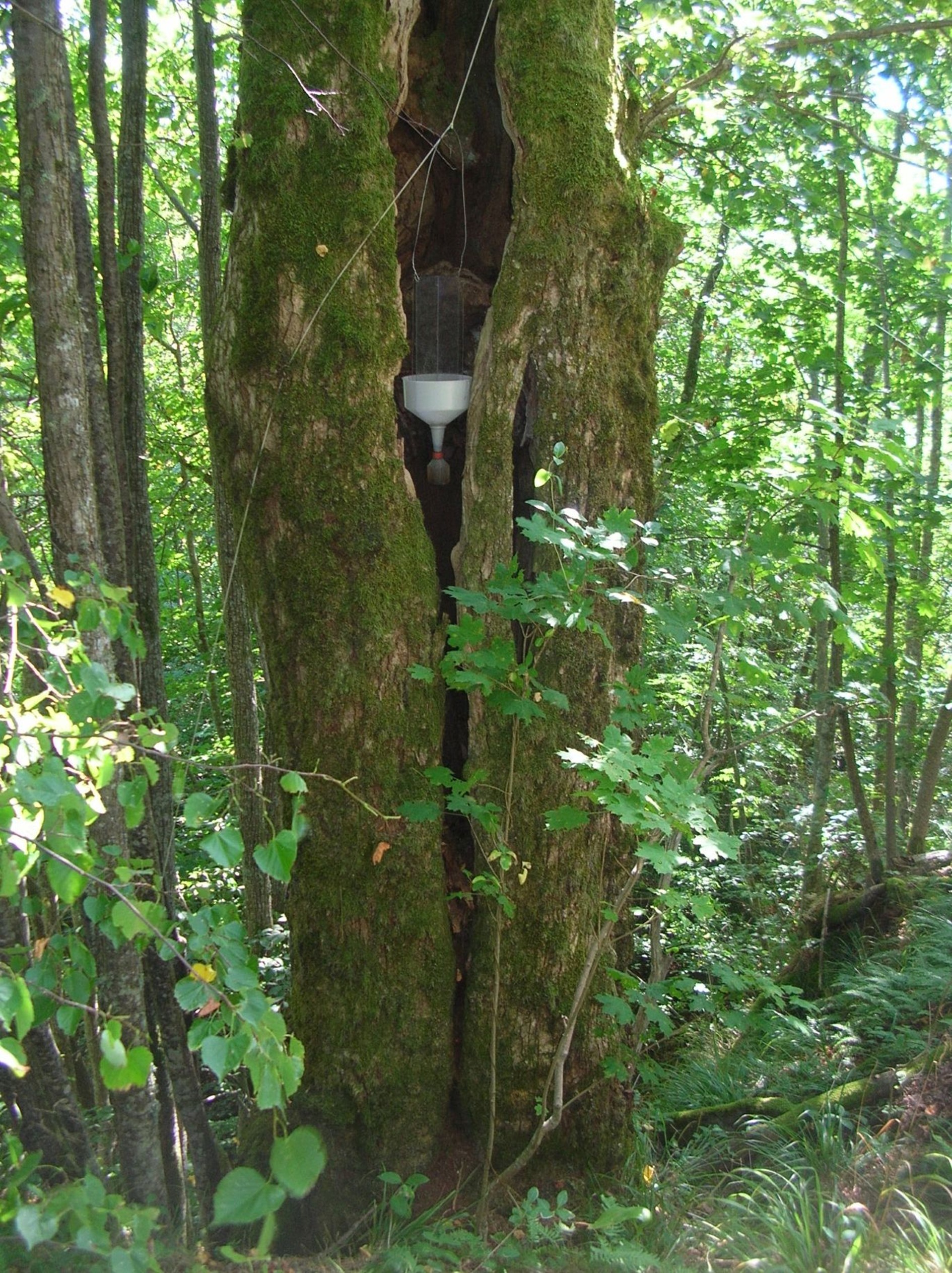 Sopper som svovelkjuke og oksetungesopp har stått for dette arbeidet. De lever av å bryte ned den døde kjerneveden. Treet lever fortsatt, for de ytterste lagene i treet frakter fortsatt vann og næring. I noen tilfeller kan treet til og med vokse bedre etter at det har blitt hult.